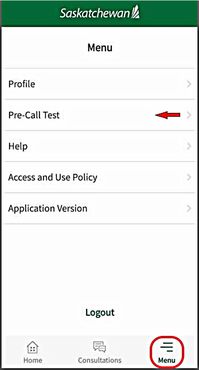 Option 1: After logging into your 'SK Virtual Visit' account - 'Pre-Call Test'