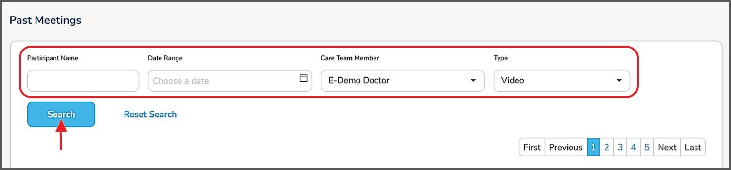 Step 3 - Using the available criteria, 'Search' for your meeting.