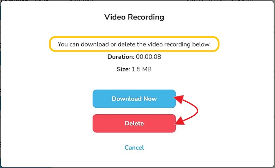 Step 5 - You have the option to 'Download' or 'Delete' the video recording. Make your selection then 'Confirm'.
