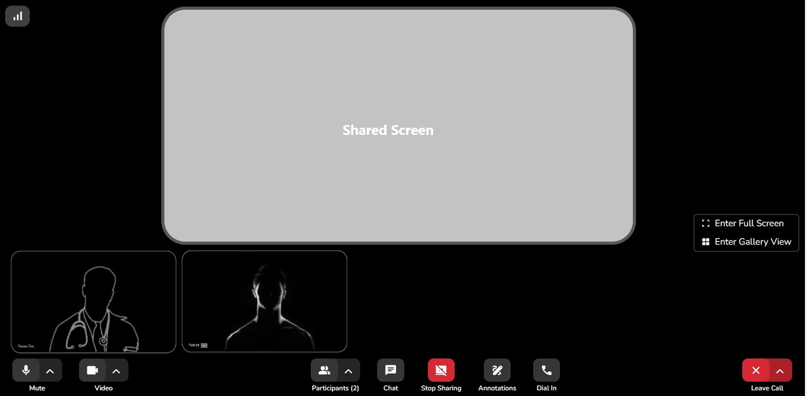 - When a shared screen is being viewed, it will be displayed the same size as all participants