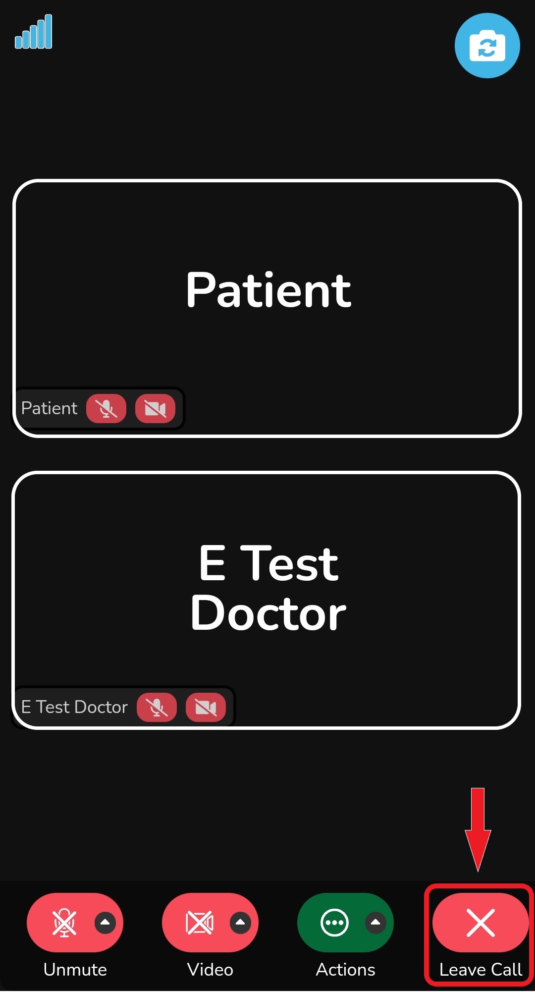 Once your healthcare provider is finished with your video meeting, tap the red 'Leave Call' button.
