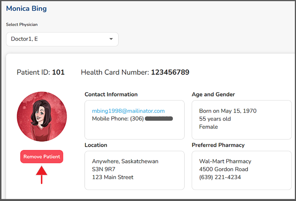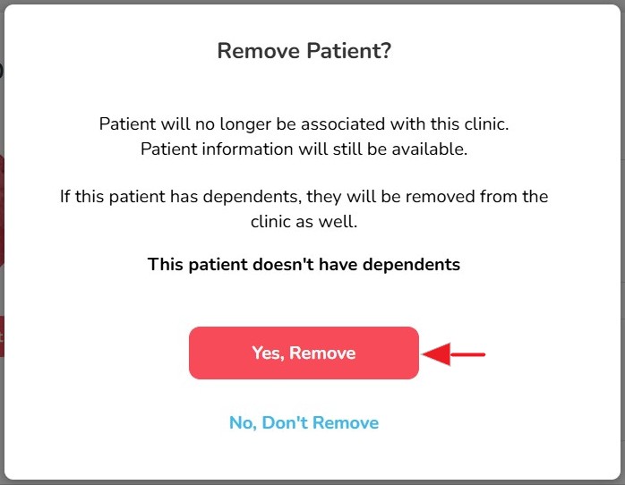 Step 2 - On the Patient Information screen, click 'Remove Patient'.