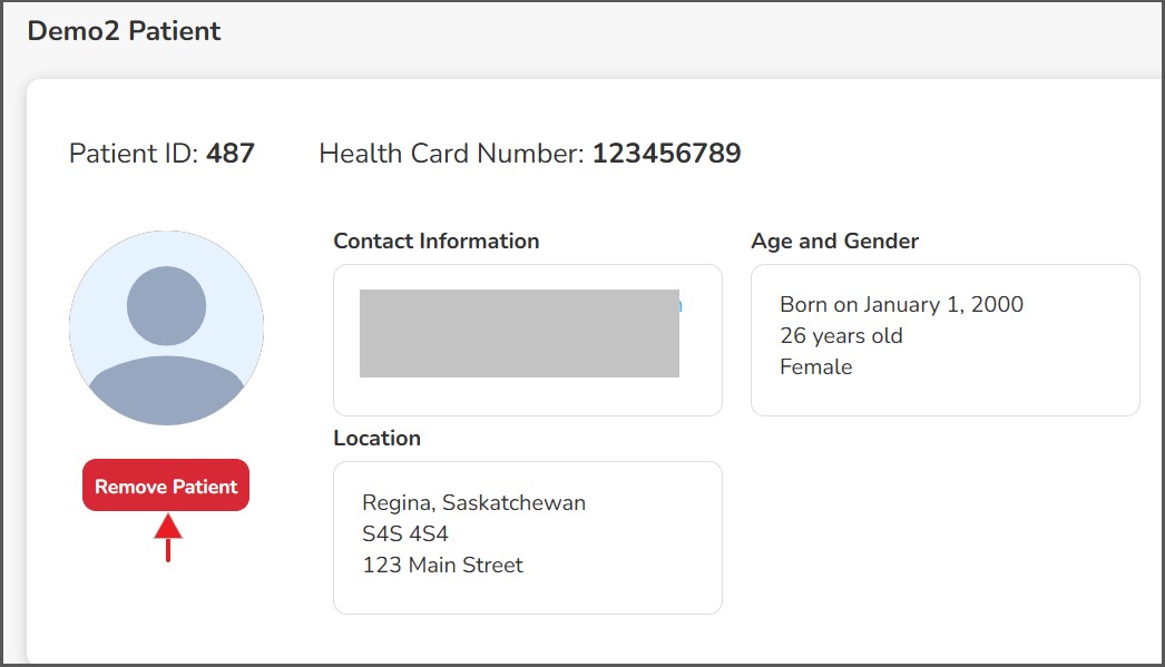 Step 2 - On the Patient Information screen, click 'Remove Patient'.