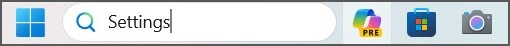 - The taskbar Search box - type 'Settings', then 'Enter' on your keyboard
