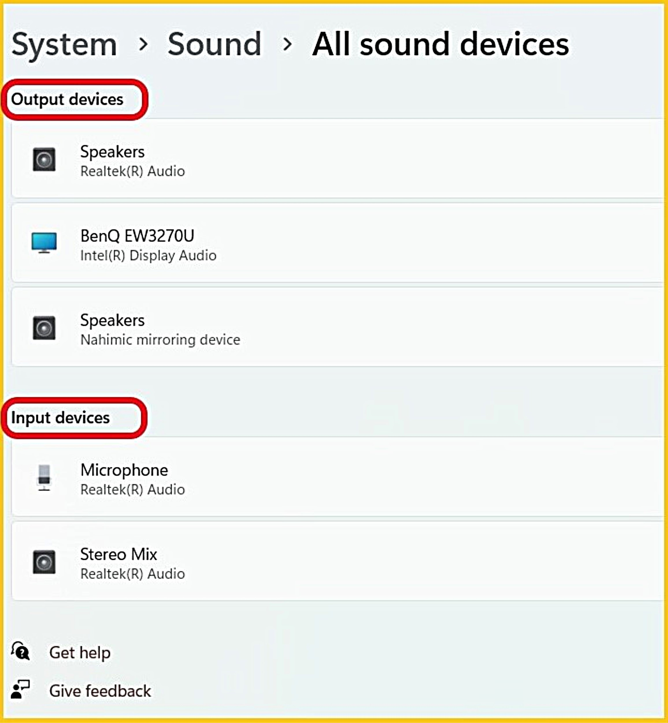 Scroll down and click 'All sound devices' and ensure the correct speakers and microphone are selected.