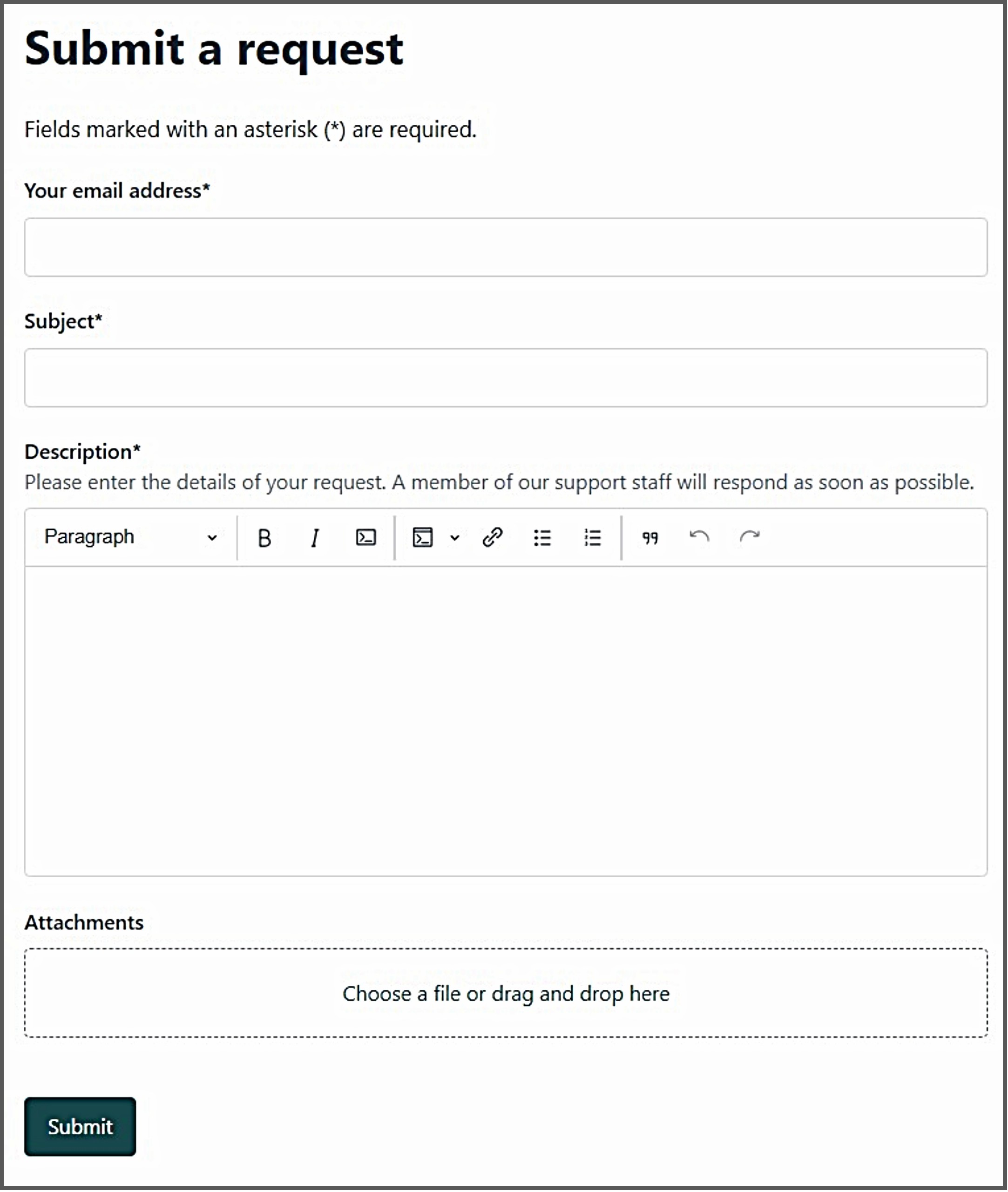 Step 1 - Click 'Submit a request' on the top-right corner of the screen.