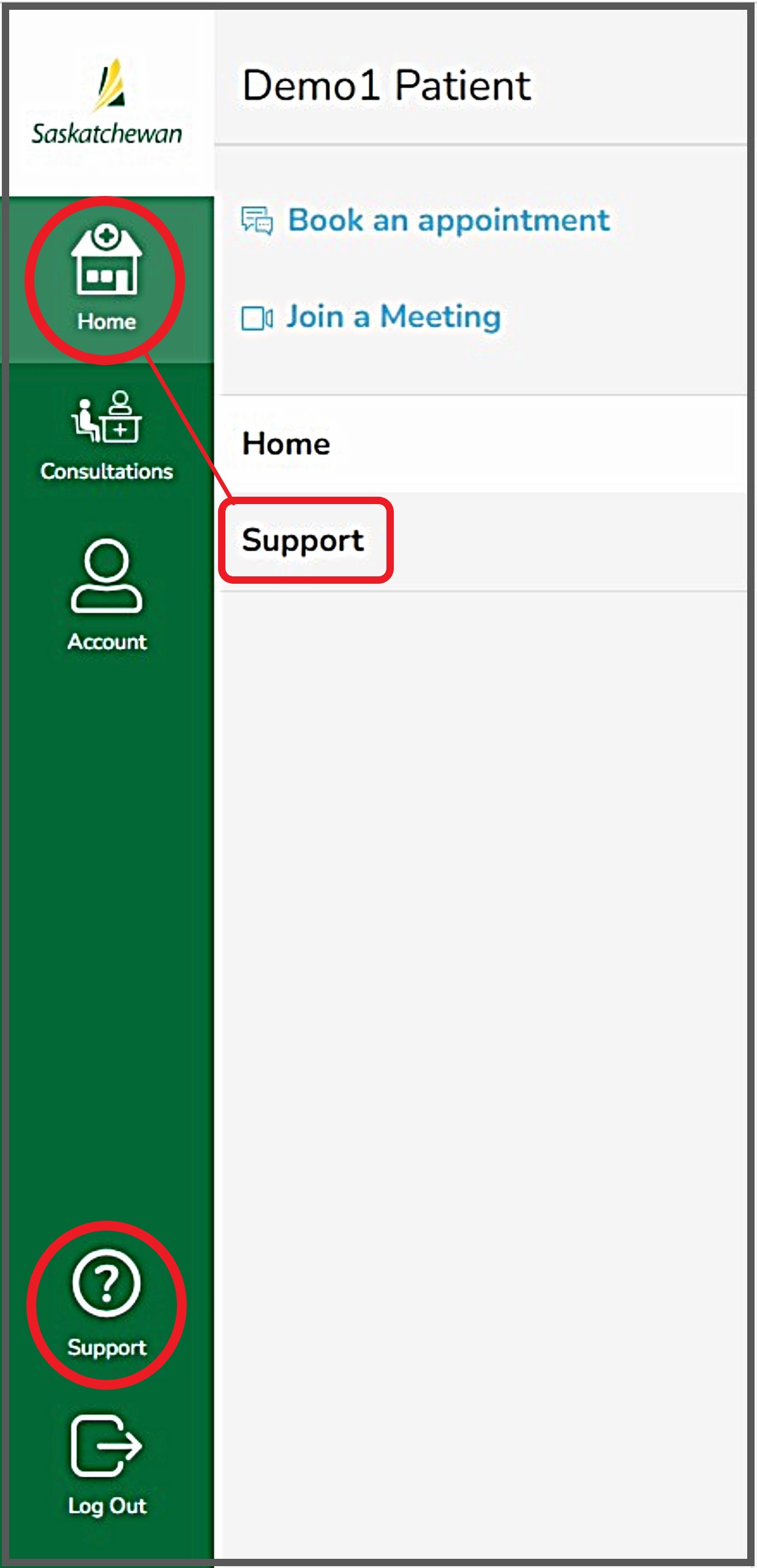 Step 1 - From the left dashboard, select 'Support' (found near the bottom of the green navigation bar or under the 'Home' tab)