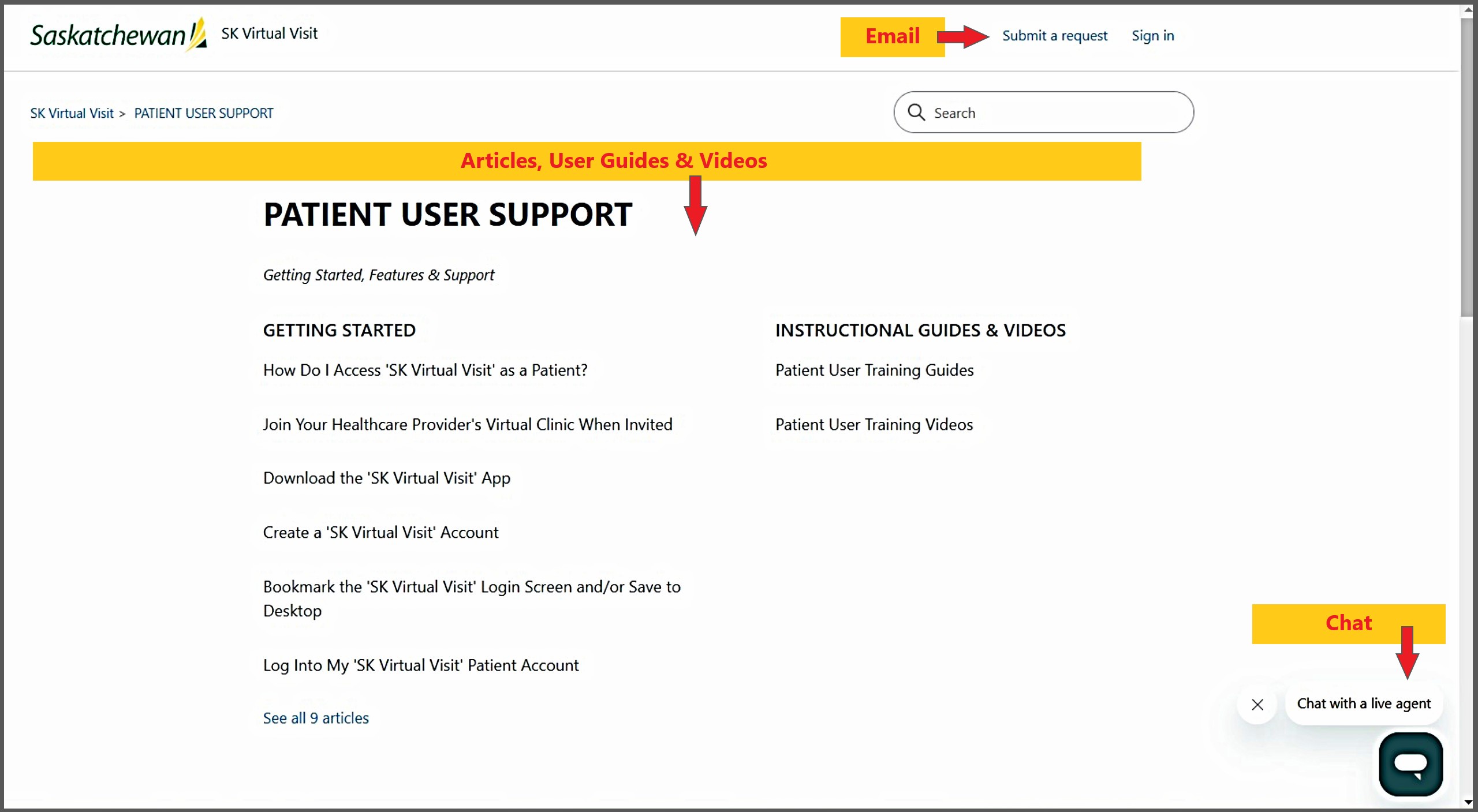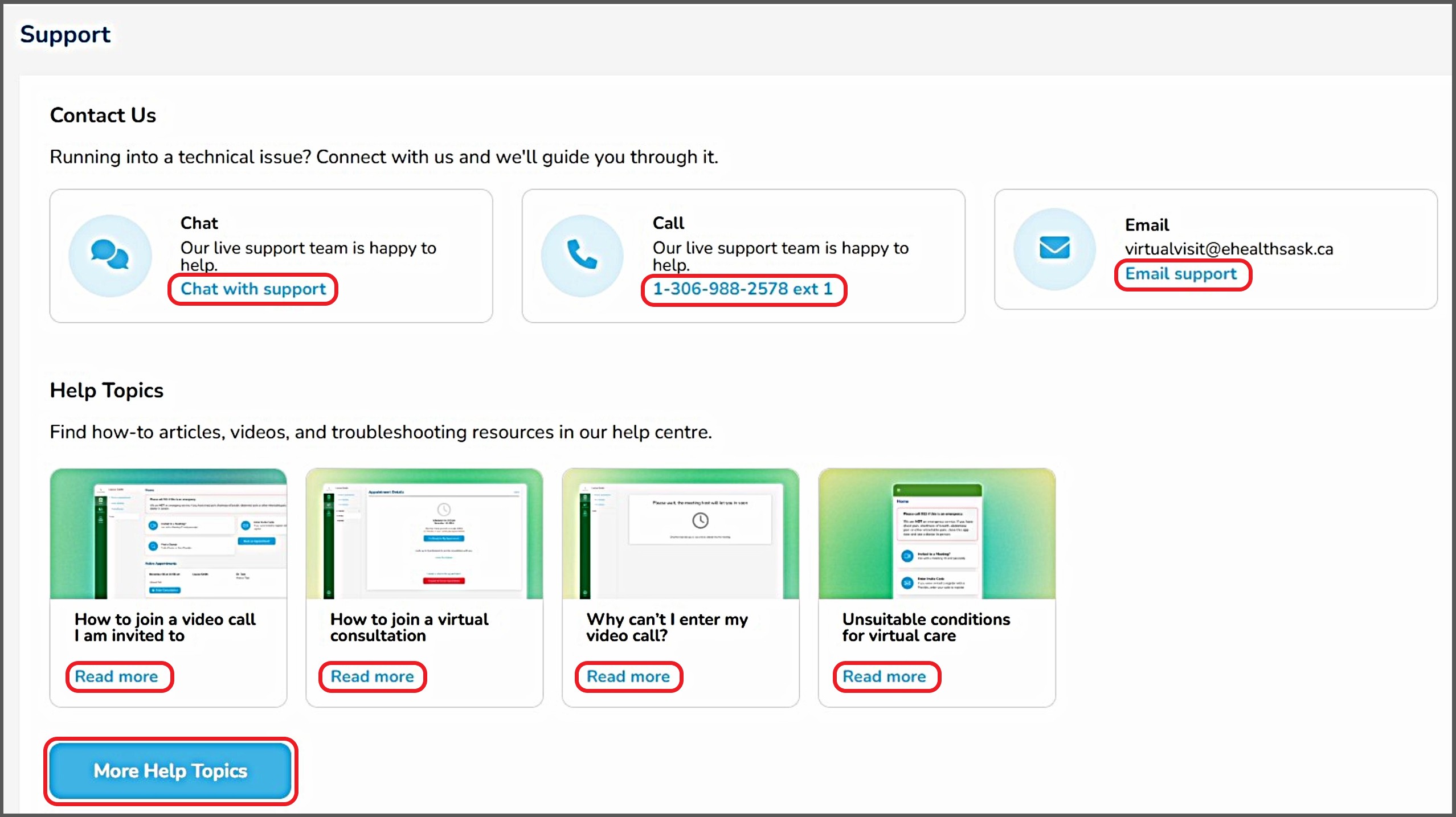 - Email support at virtualvisit@ehealthsask.ca
