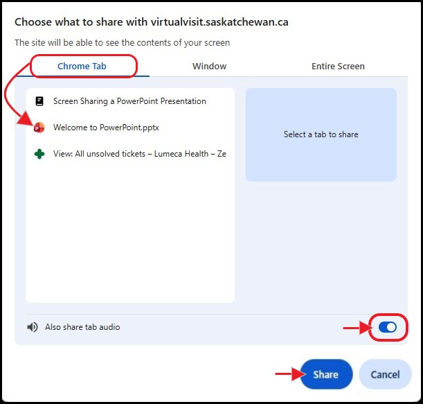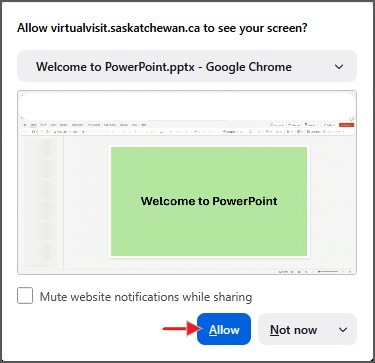 Step 1 - Prior to starting your SK Virtual Visit meeting, make sure the document or presentation you want to share is open on your computer.