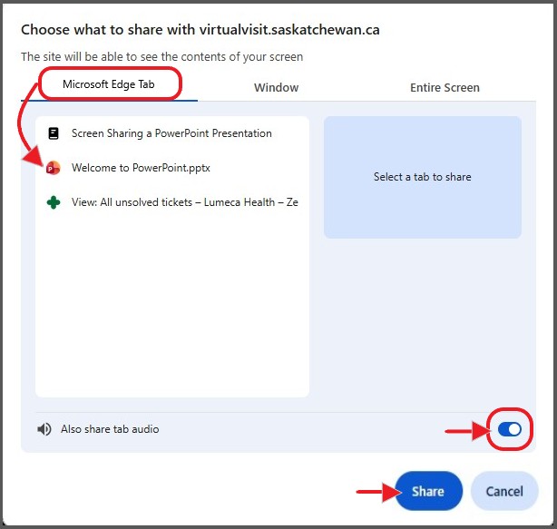 - Make sure the PowerPoint presentation you want to share is open on your computer.