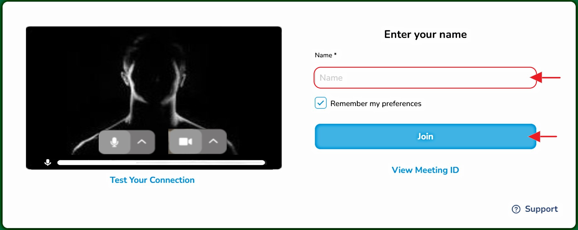 - Enter your name, click 'Join', then wait in the virtual waiting room for the meeting host to allow you in.