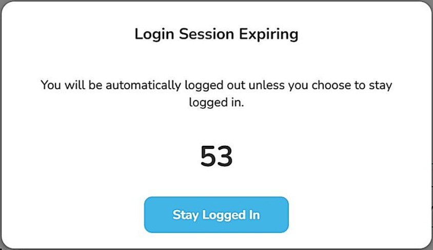 After an hour of no use, the system will prompt you to remain logged in or will log you out automatically.