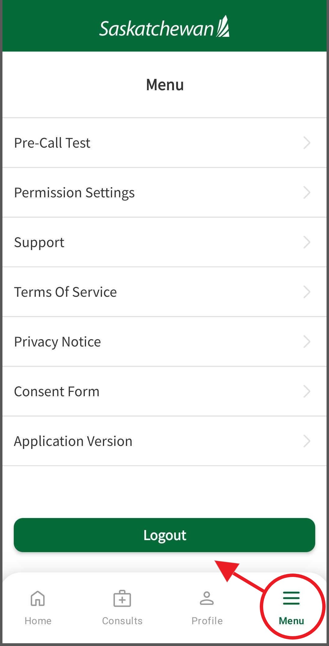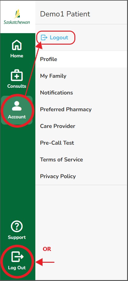 Step 1: Open the SK Virtual Visit APP (if downloaded onto your mobile device) or go to https://virtualvisit.saskatchewan.ca/ on the WEB.