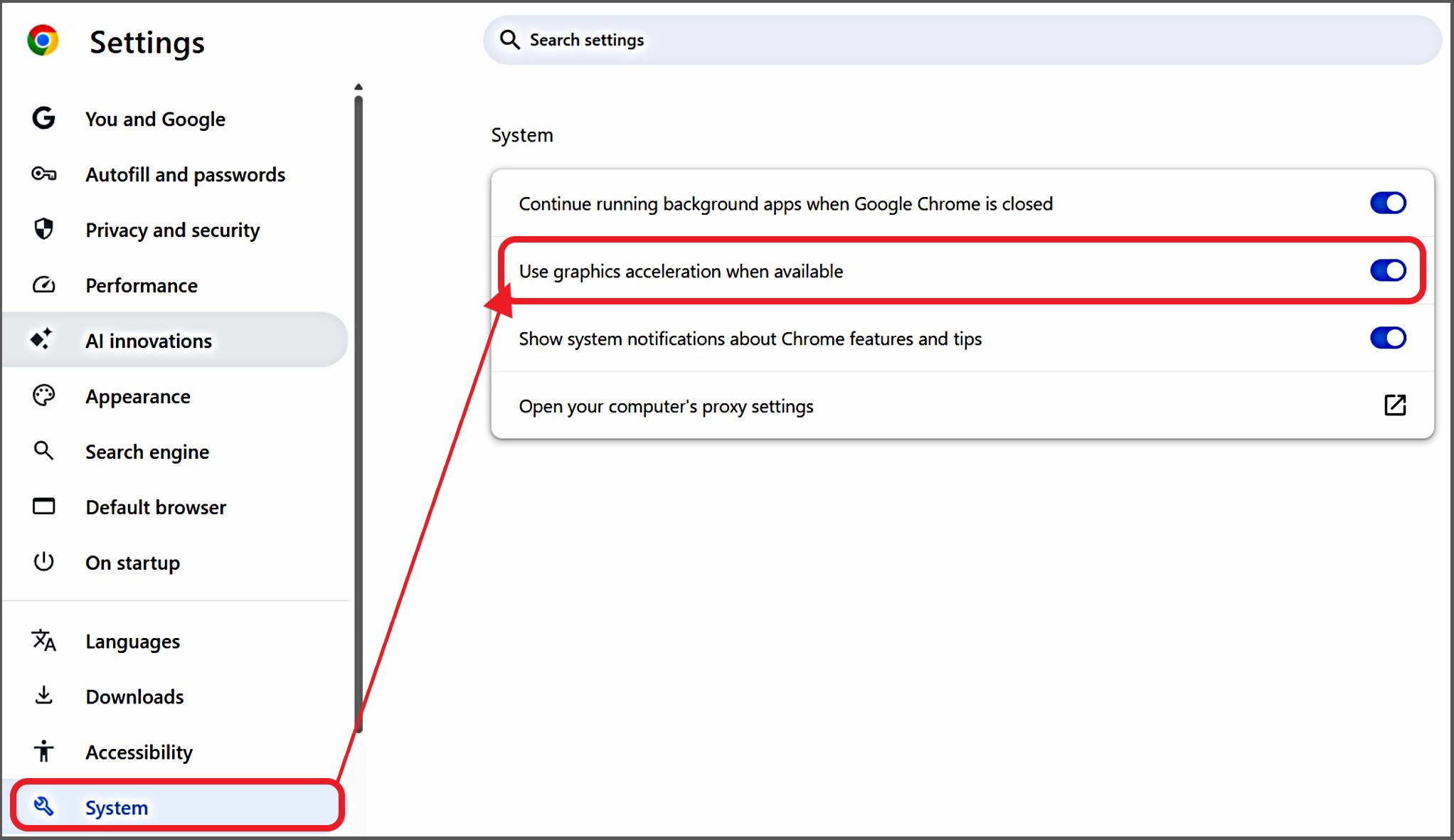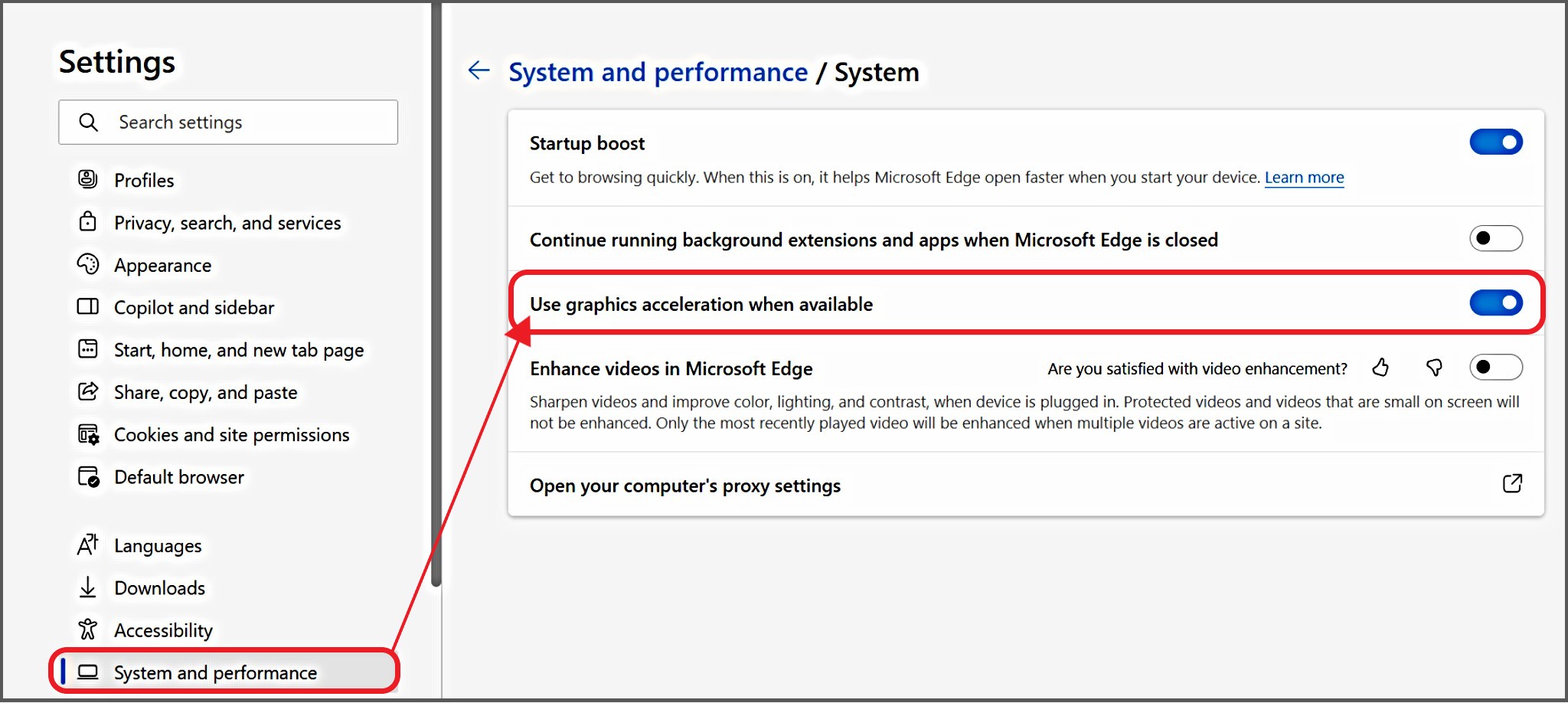 Ensure that the Graphics Acceleration Feature is Turned 'On'