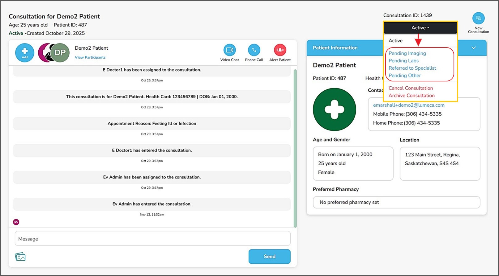 - 'Schedule' - reschedule another consultation for this patient