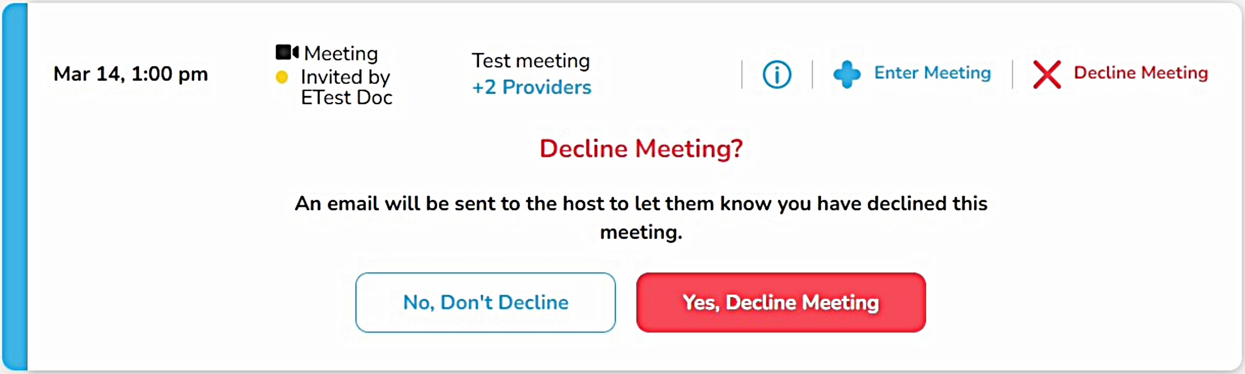 Clinic care team members can receive notifications when an invited colleague declines their invitation to a meeting.