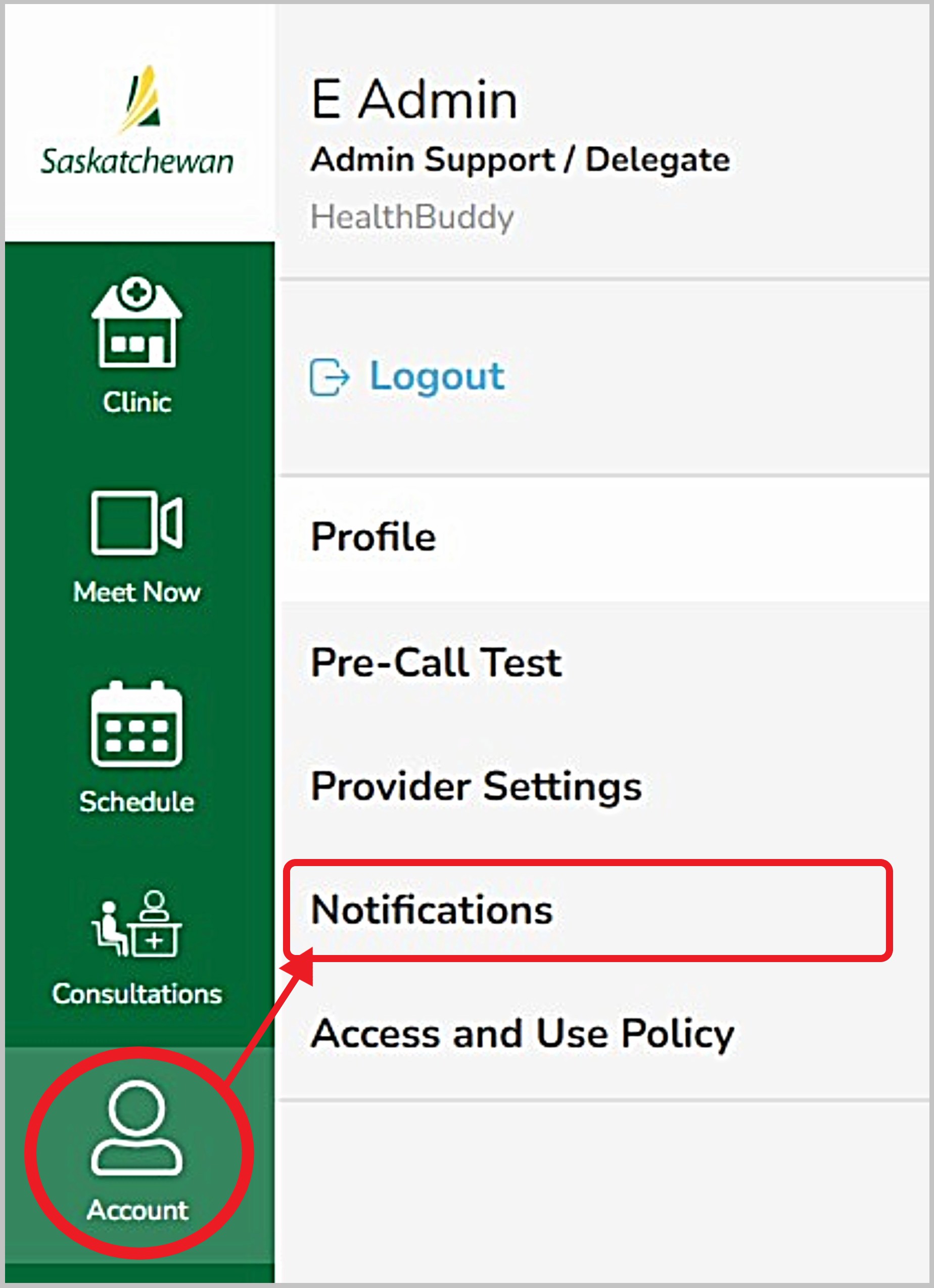 Step 1 - From the left navigation bar, select 'Account', then click 'Notifications'.