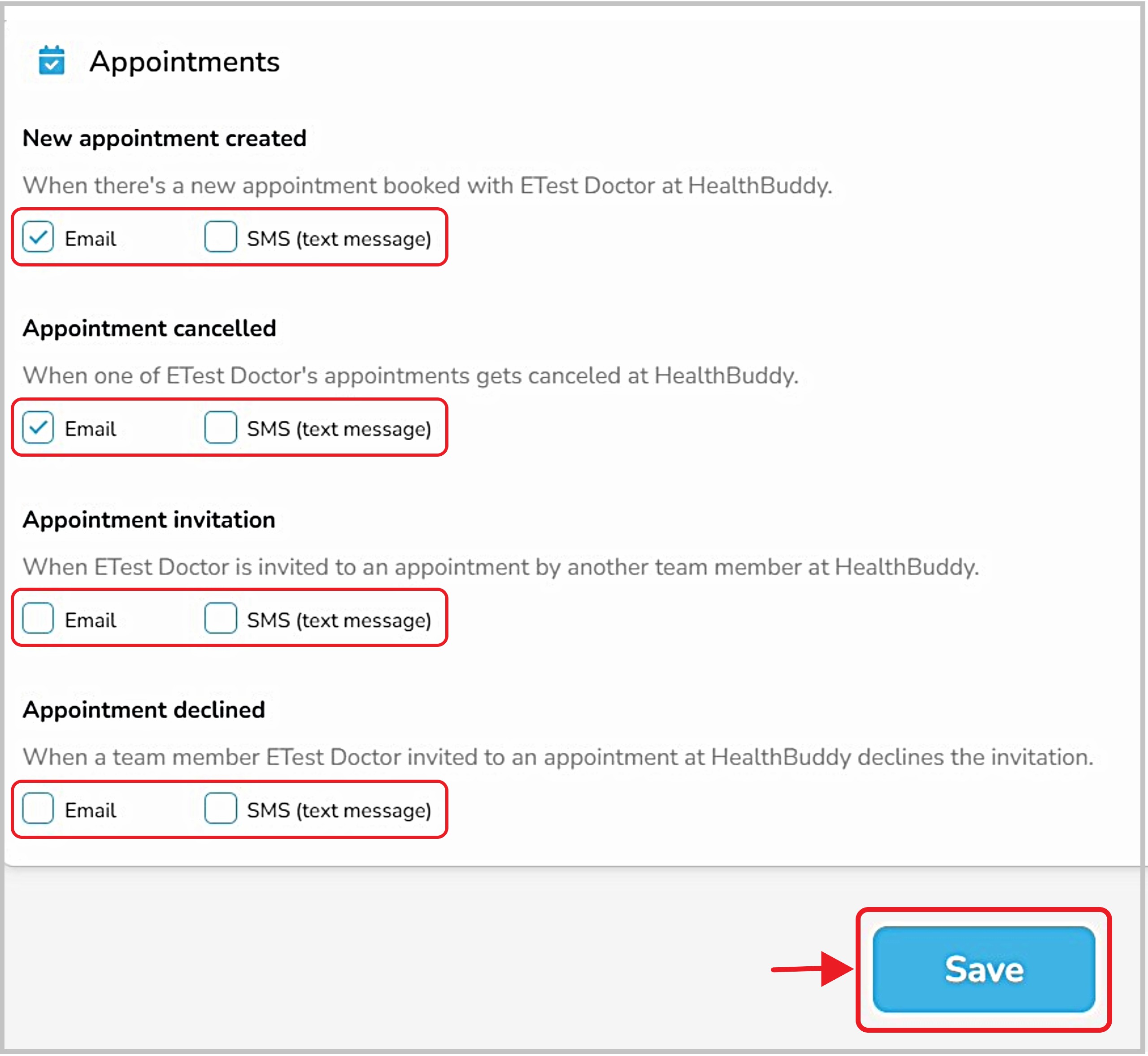Step 3 - Under ‘Appointments’, 'check' the notifications you wish to receive.