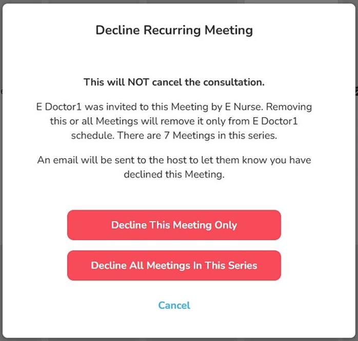 At the time video meetings are being scheduled, healthcare providers or clinic admins acting on their behalf, may invite other providers from the same virtual clinic to join in.