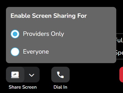 End Call for All - ends the video chat completely. Only avail to the host or participants who are part of the host's clinic care team.