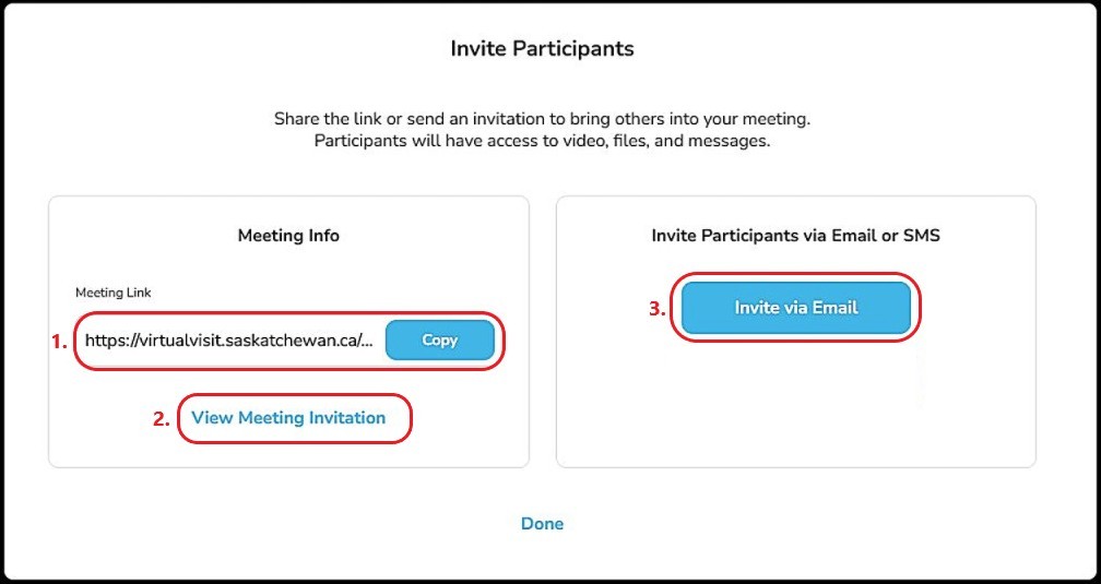 Note: all invited participants, including the patient, will only be granted access when 'admitted' by the host. If they are declined access into the meeting, they cannot rejoin.