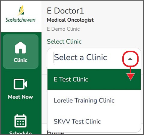 Important: If you are working with more than one clinic/location, it is important you select the correct clinic from the drop-down menu under 'Select Clinic'. If you only work with one clinic you will not see this dropdown.