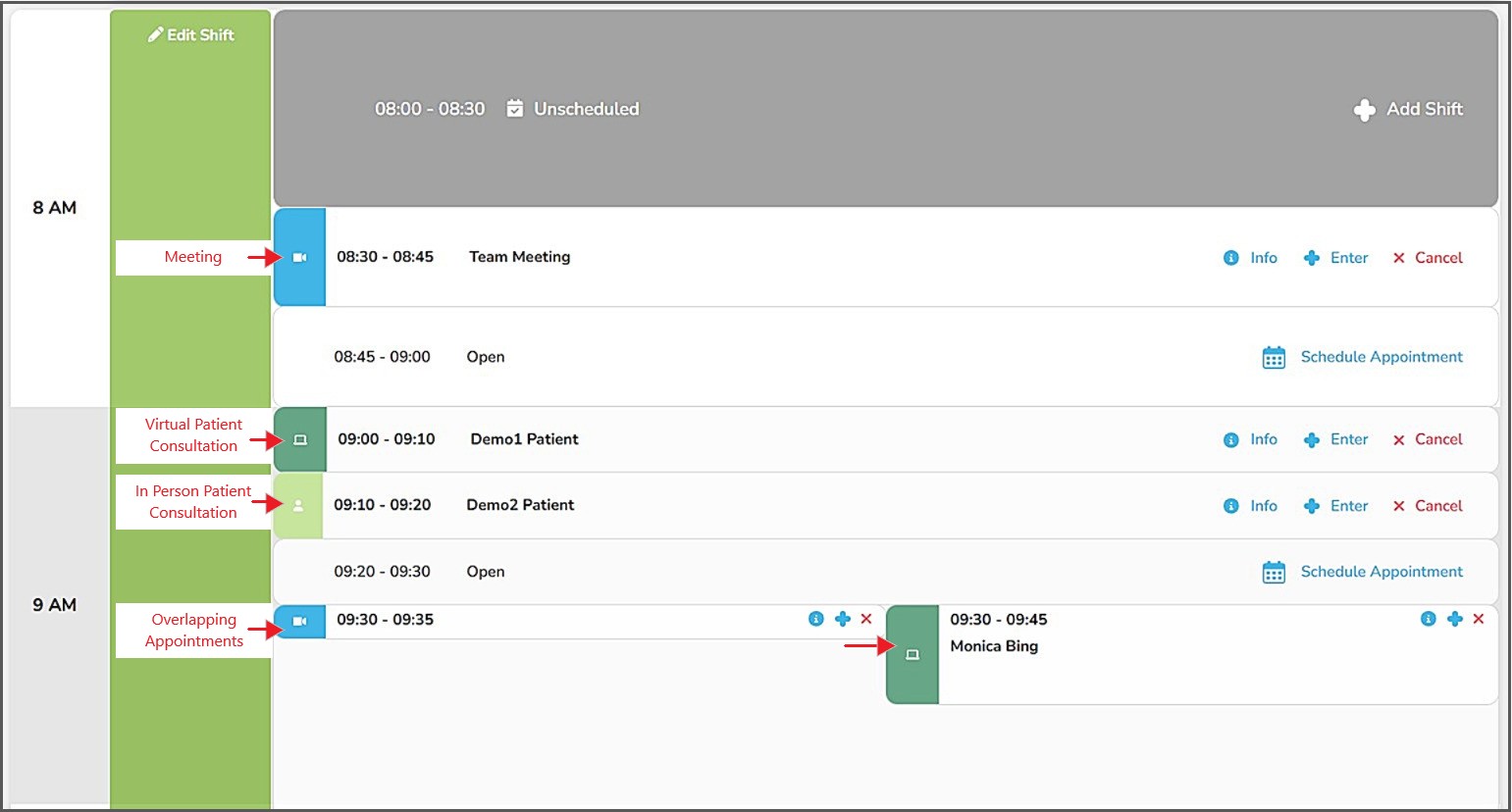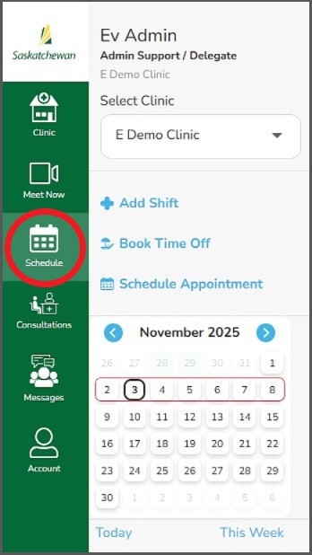 Healthcare provider's shifts may be added to SK Virtual Visit, as an option. It is, however, recommended that provider's schedules continue to be managed using the clinic's regular EMR system.