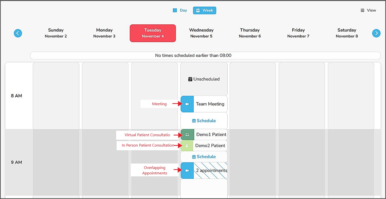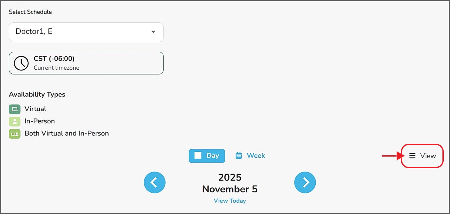 - Schedule Appointment - click to schedule an appointment into this open timeslot