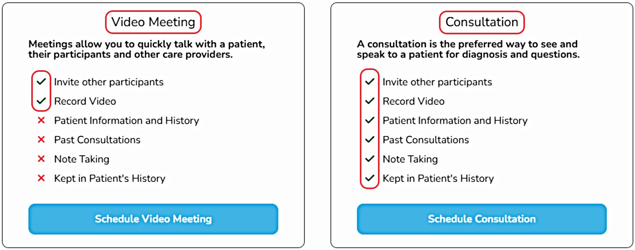 Option 2: A scheduled or quick video or phone meeting (with or without patient attendance) - not tied to patient records in the system.