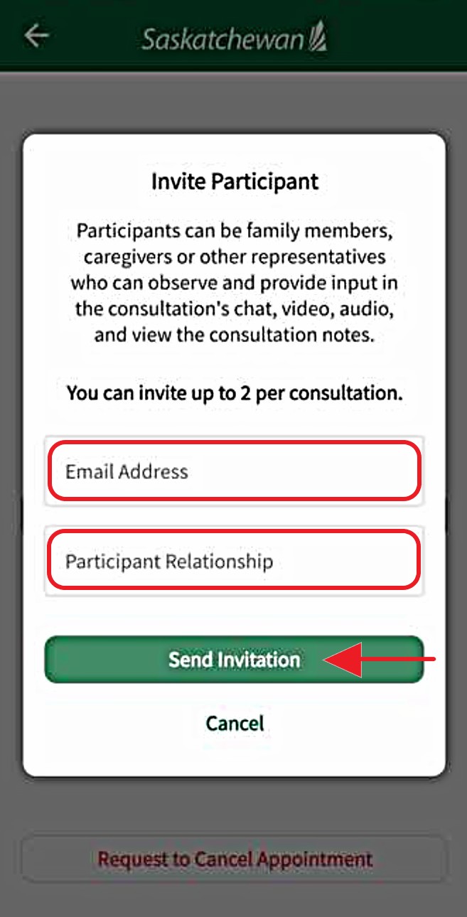 Patients may invite up to two participants (family members, caregivers or other healthcare providers) to join the video portion of their consultation.