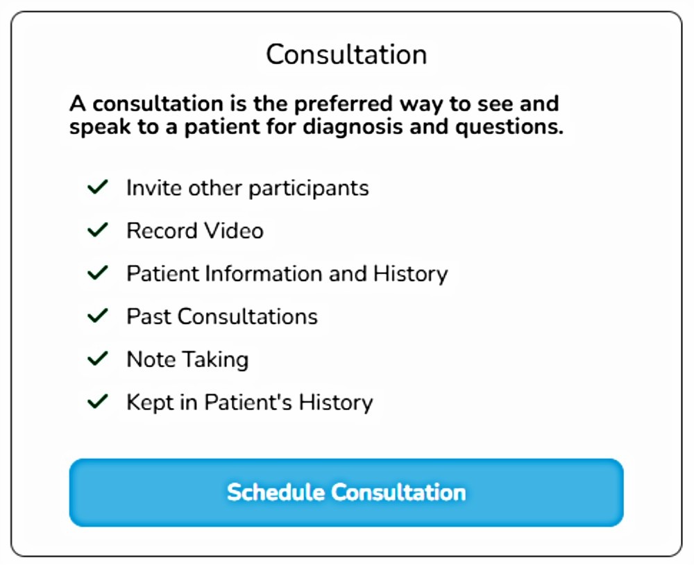 This does not apply to healthcare providers from the same clinic who were added when the meetings were scheduled (under Step 3 above), as they can access the meetings directly when logged into their account under the 'Consultations' or 'Schedule' tab .