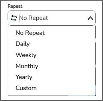 - If scheduling one consultation - 'Repeat' - select 'No Repeat'.