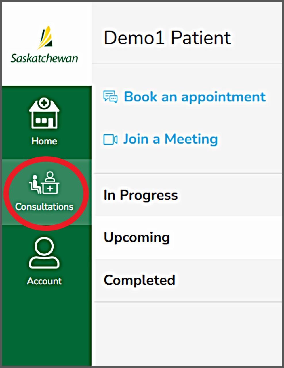 Note: Consultations automatically move from ‘Upcoming’ to ‘In Progress’ as soon as any participant, including you or your healthcare provider, joins.