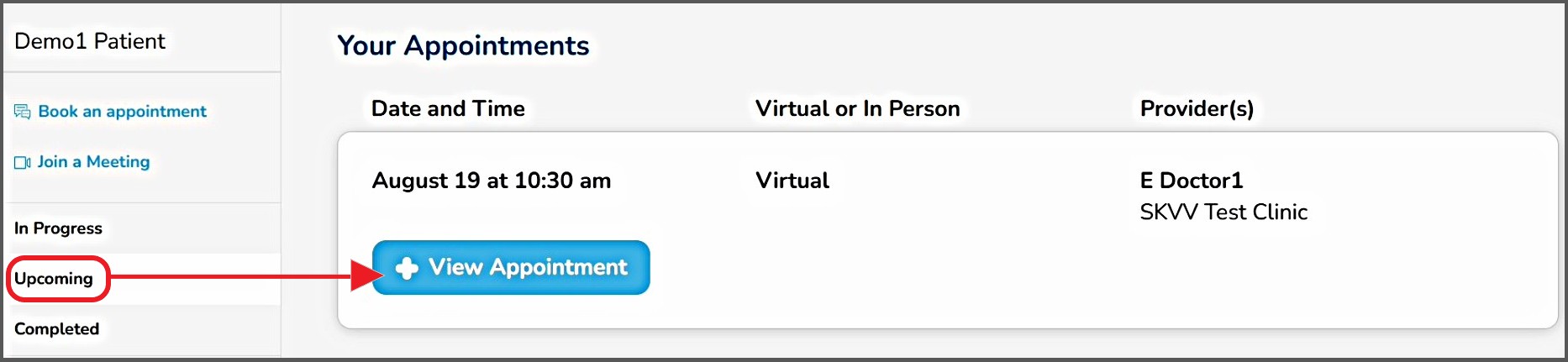 On the left navigation bar, tap Consultations > Upcoming > View Appointment