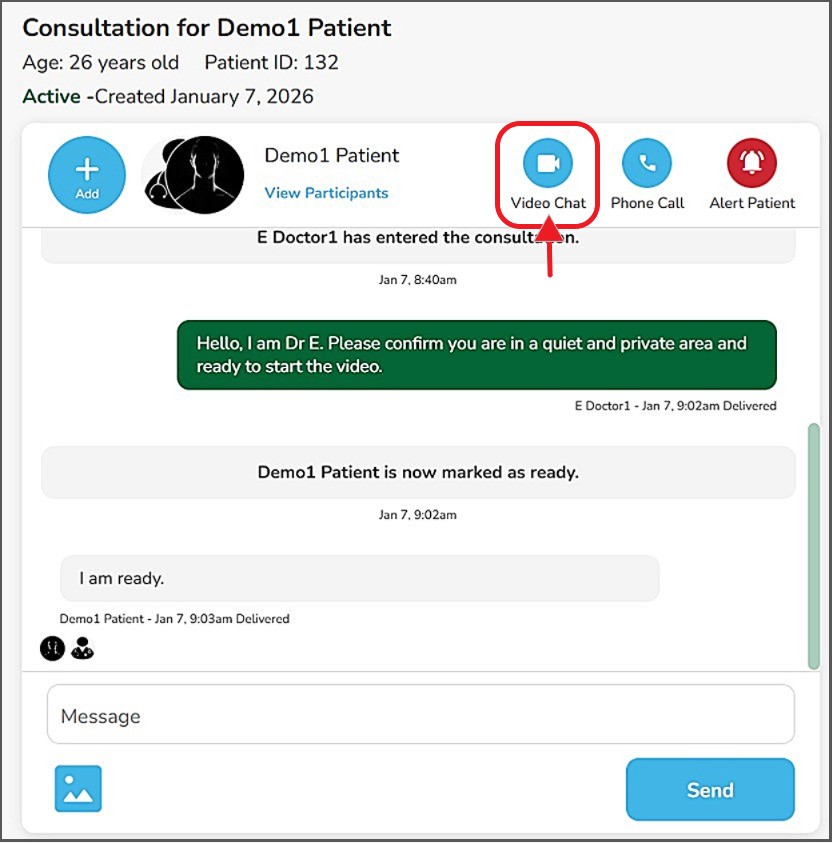 Once your patient enables their video and audio and clicks 'Join Video Chat', they will arrive in the video. |