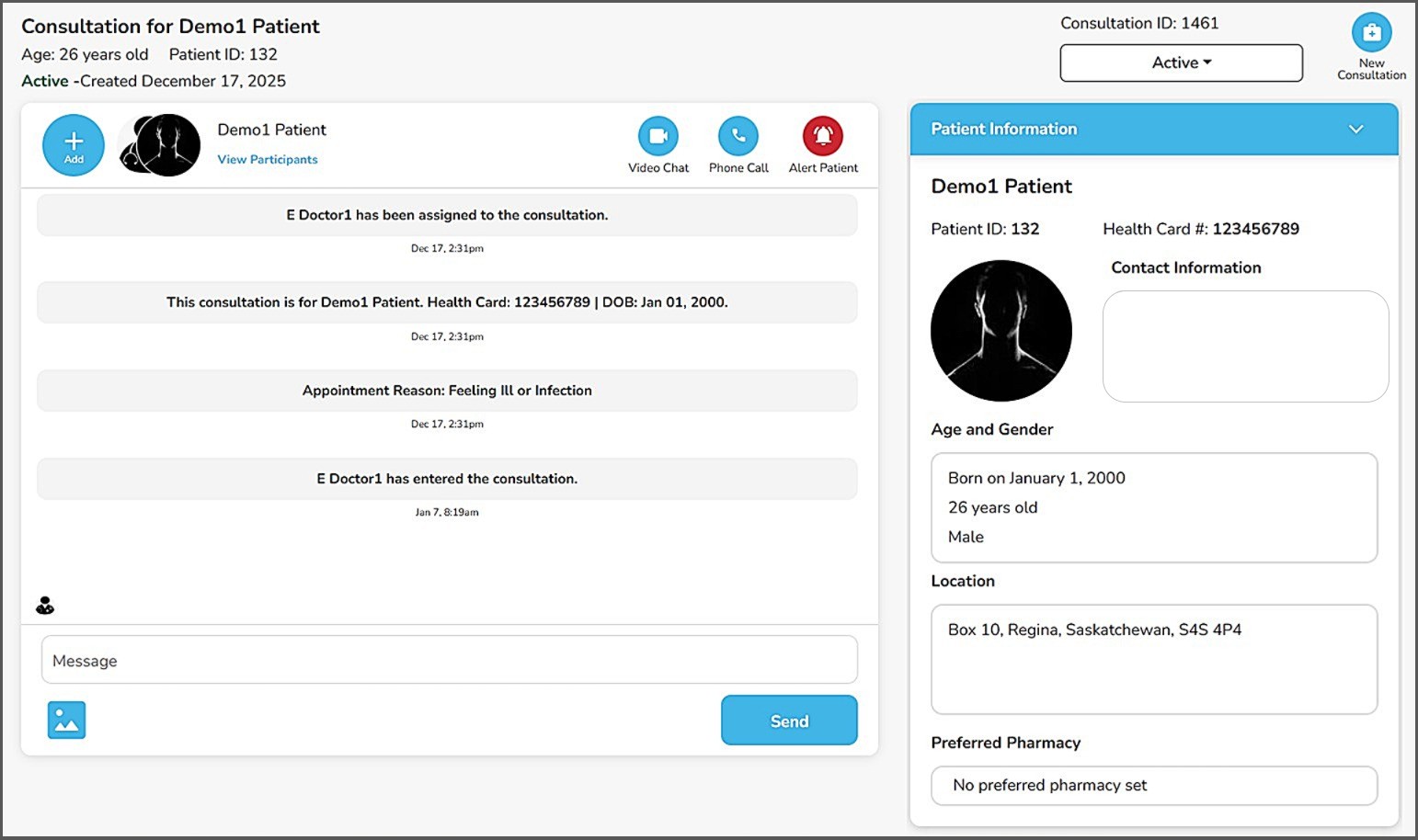 At this point, you are only viewing this consultation; the patient will not realize you are there nor can you yet message the patient. This gives you the opportunity to review the consult info, back out and return to the next step when ready to start the consultation with the patient.