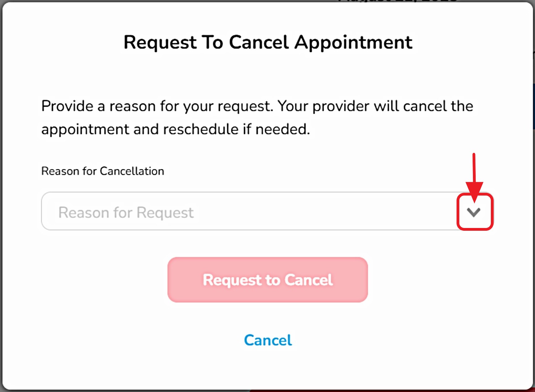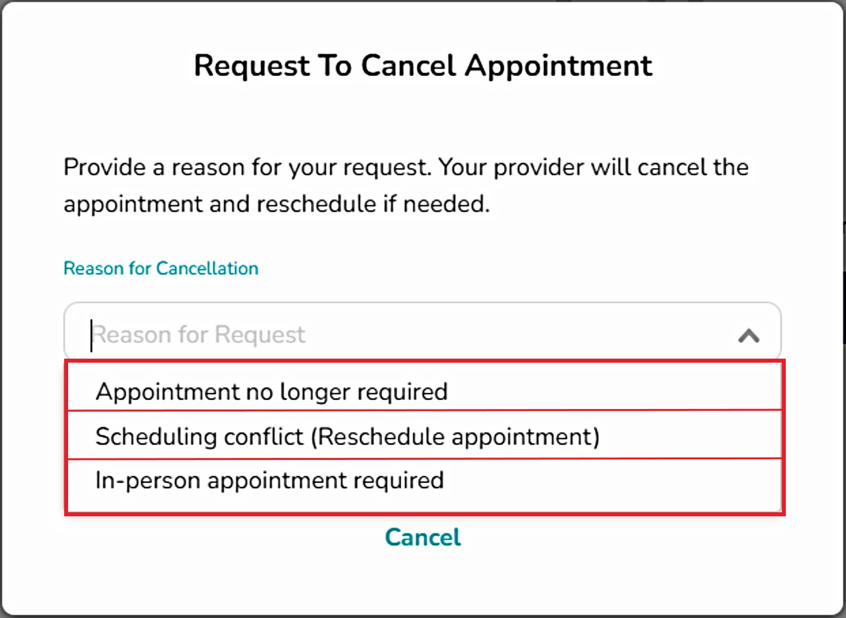 Step 4 - Click the drop-down arrow where three reasons are made available for you to choose from. This reason is provided to your healthcare provider along with the request.