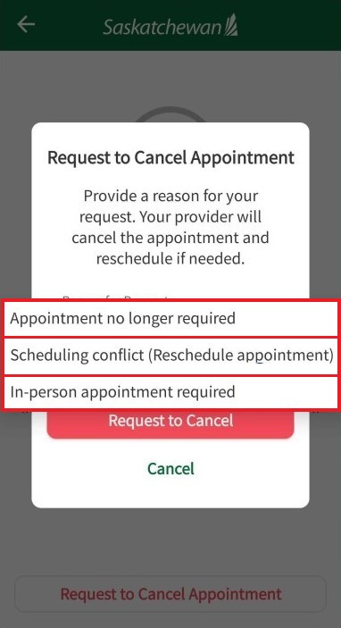 You will see a confirmation flag on your screen and your healthcare provider's clinic will be notified that you wish to cancel your appointment.