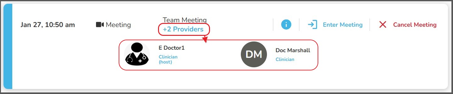 - Number of providers from the same virtual clinic invited to this appointment. Click this button to see the host and invited provider's names.