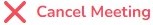 X Cancel - The host providers, or clinic admin acting on their behalf, can cancel video meetings or consultations. This cancels the appointment entirely and removes it from all invited providers’ schedules.