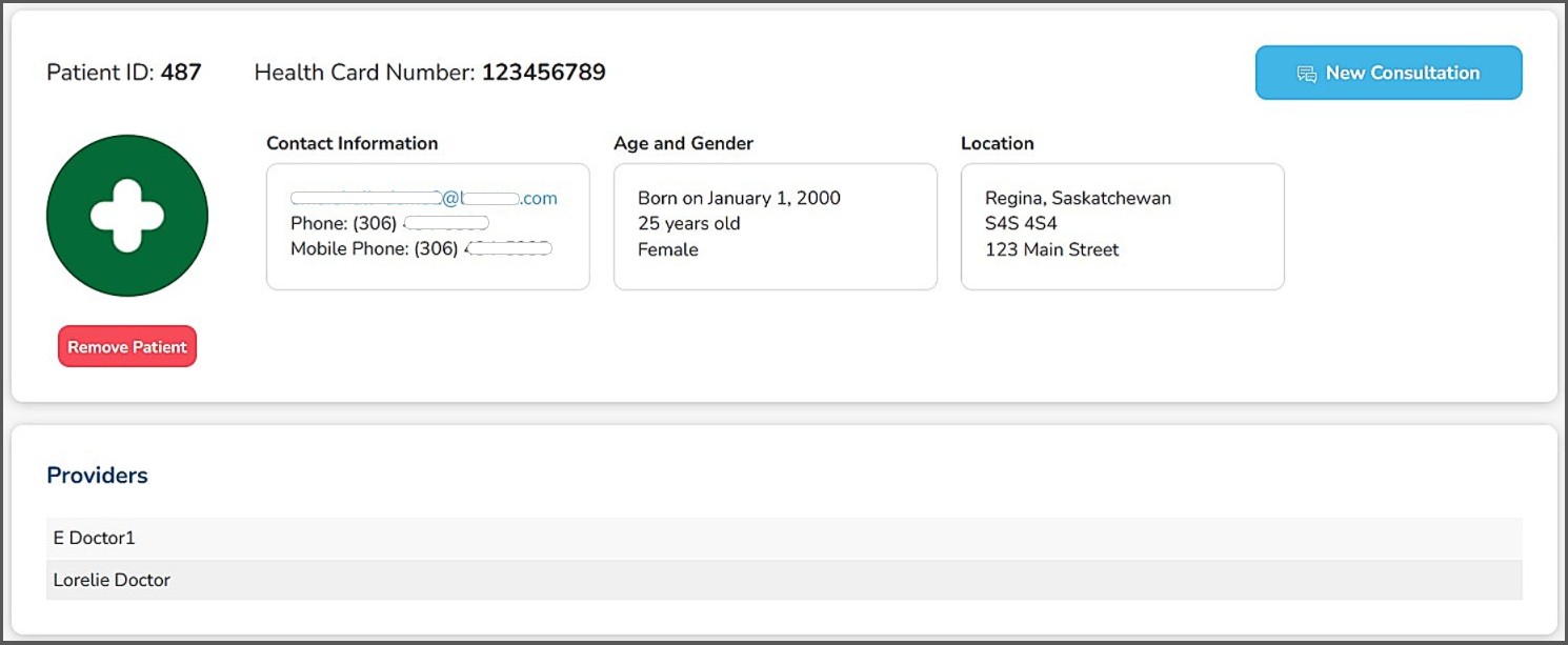 Also shown is their system-generated SK Virtual Visit Patient ID number.