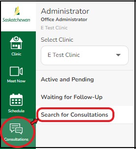 Step 1 - From the left navigation bar, click 'Consultations', then select 'Search for Consultations'.