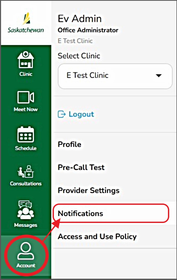 For new clinic user accounts, email notifications will be set to 'ON' by default: