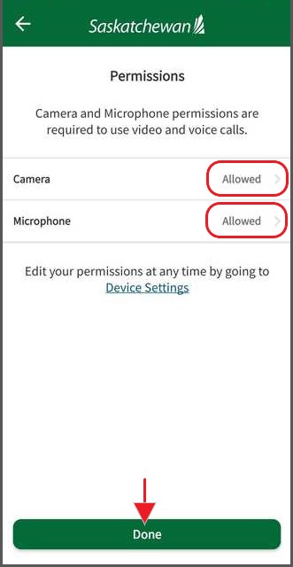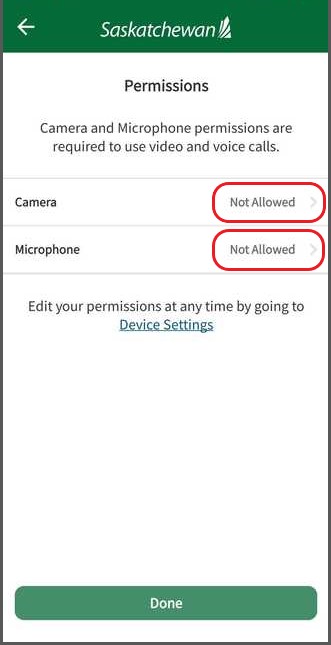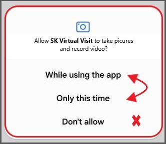 Step 3 - The first time you use the 'SK Virtual Visit' app and run the 'Pre-Call Test', you will be prompted for permissions to your camera and microphone.