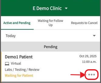 Depending on the appointment status, when you tap the '3 dots', you will see options, such as: