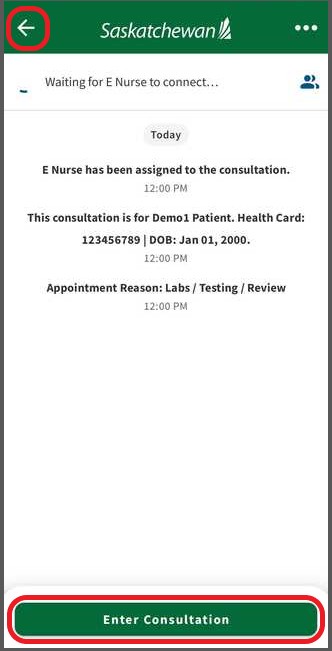 Step 6 - When ready to consult with your patient, click 'Enter Consultation' at the bottom of this screen.