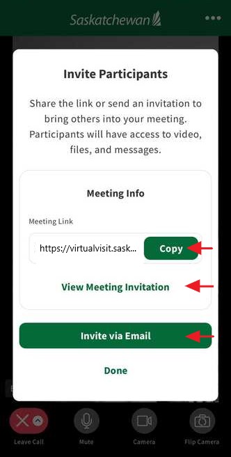 Step 4 - Get Join-In Information - Choose one of the three options available to send additional participant(s) the consultation information: