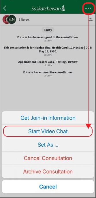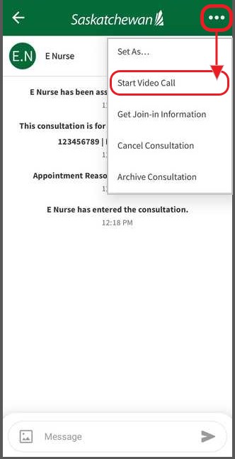 Step 8 - After you confirm that the patient is in a private and quiet setting and you have their permission to proceed with video, click the ‘3 dots’, then select the ‘Start Video’ button.