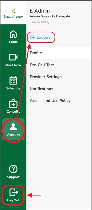 - Under 'Account' > 'Logout'