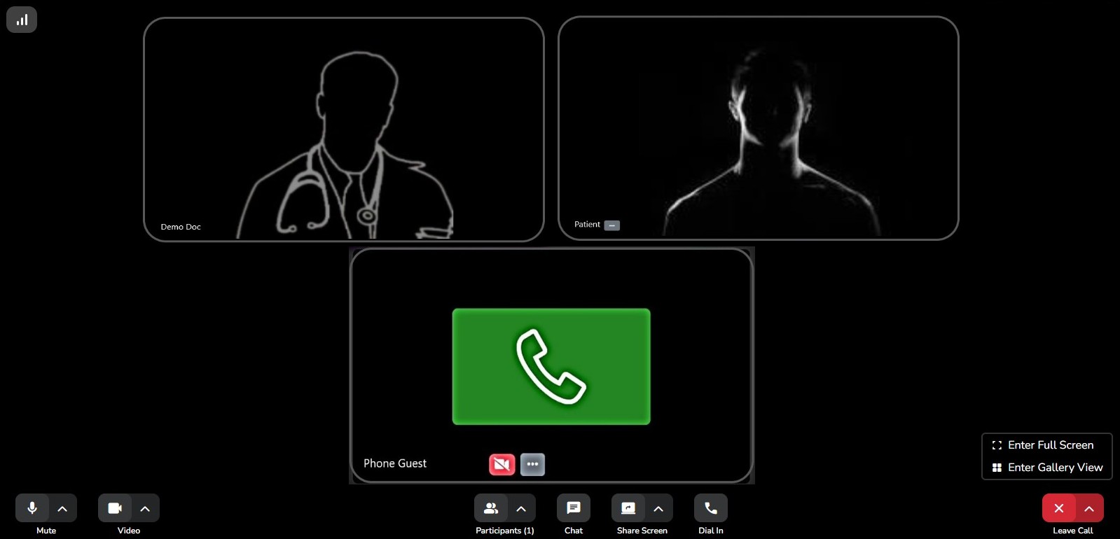 The host healthcare provider or other participants from the same virtual clinic can have participant(s) join by phone audio using the 'Dial In' feature.